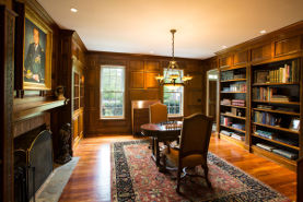 The Library is nestled between the Foyer and Kitchen and is adjacent to the First Floor Office. What a nice room to light a fire and read one of the classics or simply sip your favorite drink.