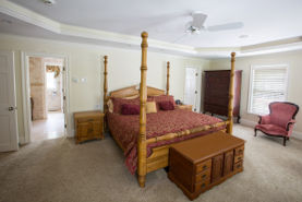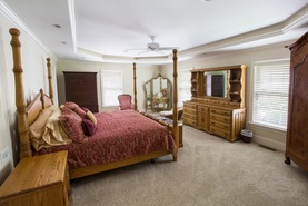 The 22'4" by 14'9" Master Bedroom Suite has hidden accent rope lighting in the tray ceiling that is set on a dimmer switch. Neutral wall to wall carpeting and wall paint make this an easy room to decorate.