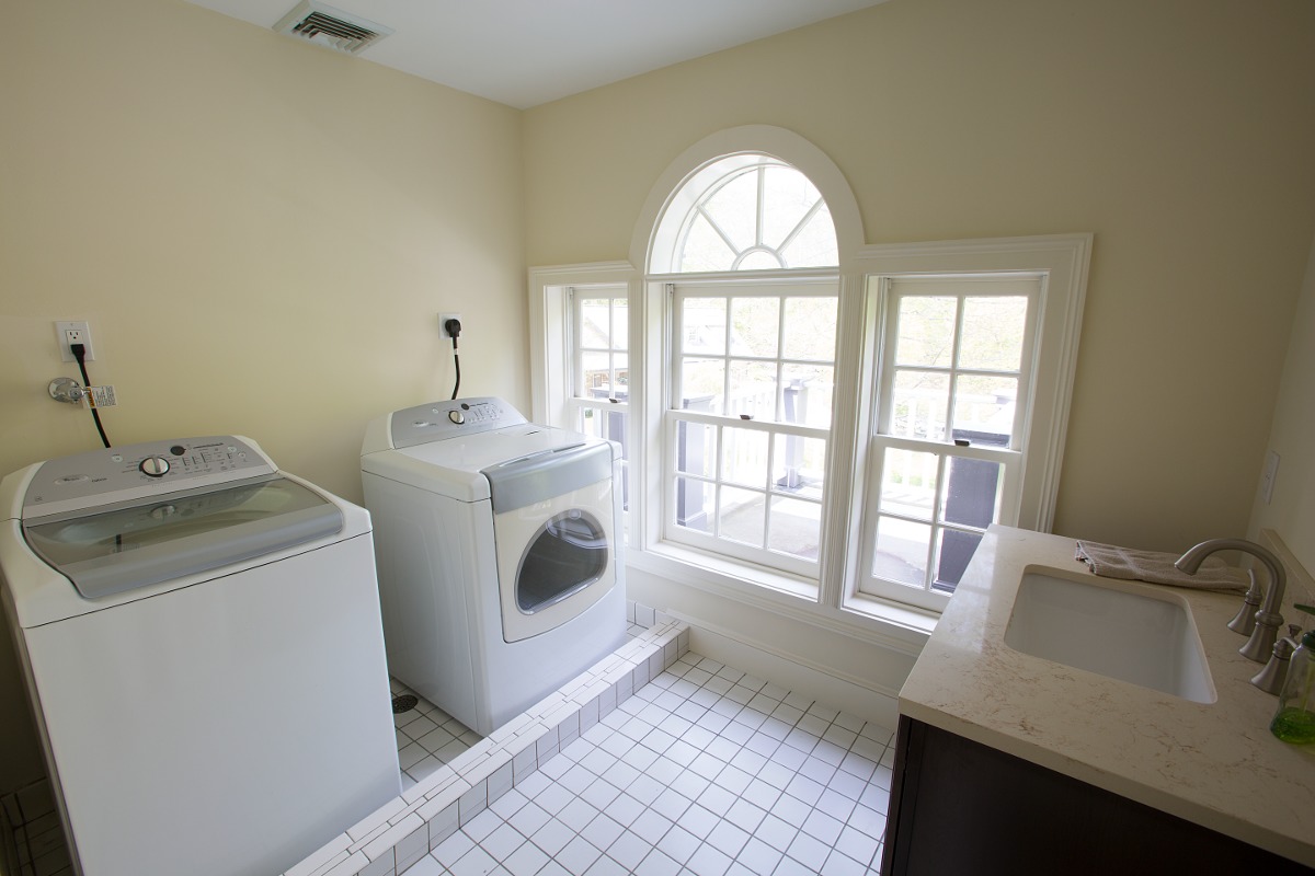 Having a laundry room on the second floor is a nice convenience. The tile floor, separate washer and dryer hook ups, and a utility sink make this a useful area. A whole house fan is present, too. (FYI: there is a stackable washer and dryer serving the First Floor master bedroom too.)