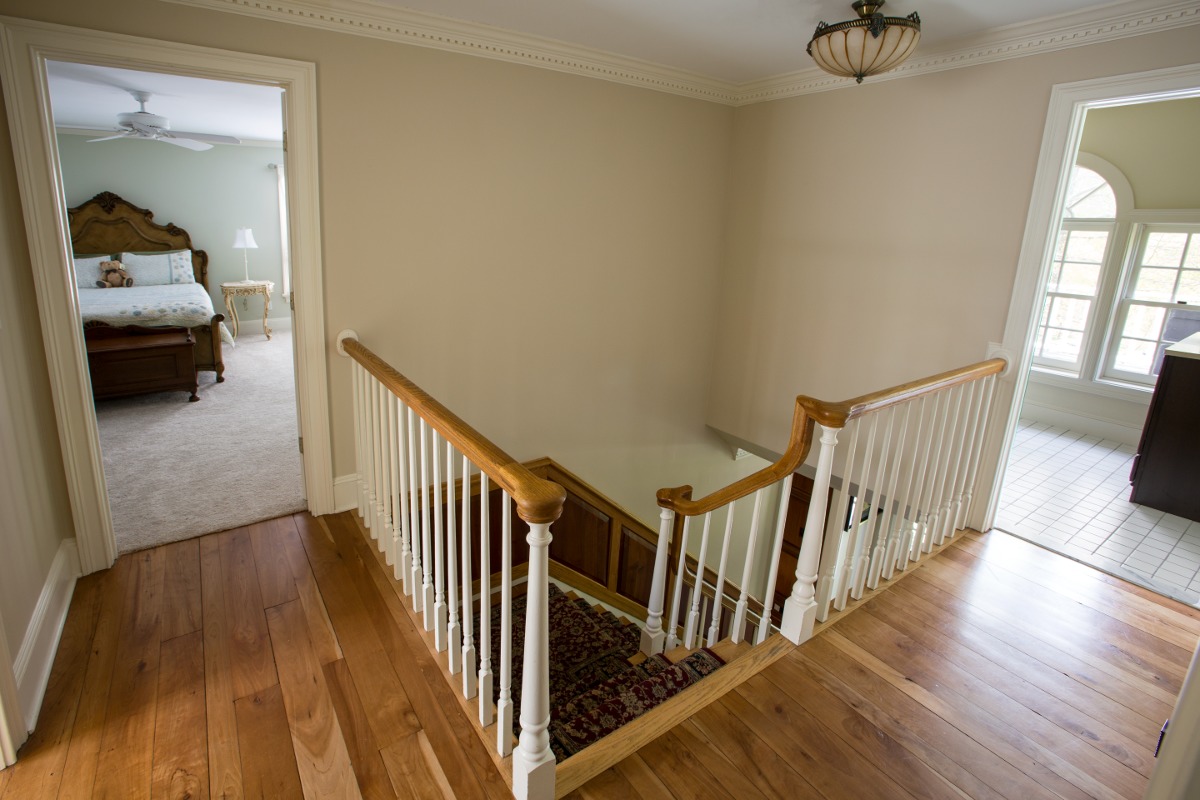 The Foyer of the Main House sets the tone for the visitor on what to expect once further into this home. The Library is immediately to the right, the Living Room is to the left. The hallway brings you down to the Kitchen and the stairway with the raised panel wainscot leads to the second floor bedrooms.